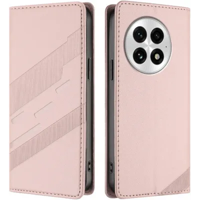 Coque portefeuille Phonesta Embossed Lines pour OnePlus 13 - Rose