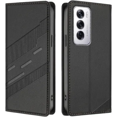 Coques de téléphoneCoques pour OppoCoques Oppo Reno12Coque portefeuille Phonesta Embossed Lines pour Oppo Reno12 - Noir