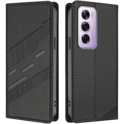 Coques de téléphoneCoques pour OppoCoques Oppo Reno12 ProCoque portefeuille Phonesta Embossed Lines pour Oppo Reno12 Pro - Noir