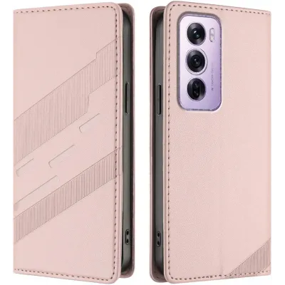 Coques de téléphoneCoques pour OppoCoques Oppo Reno12 ProCoque portefeuille Phonesta Embossed Lines pour Oppo Reno12 Pro - Rose