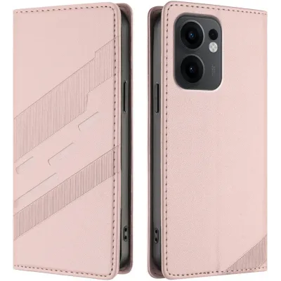 Coque portefeuille Phonesta Embossed Lines pour Oppo Reno13 F 4G/5G / Reno13 FS 5G - Rose