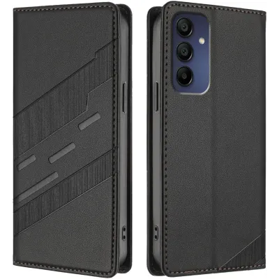 Coque portefeuille Phonesta Embossed Lines pour Samsung Galaxy A16 - Noir