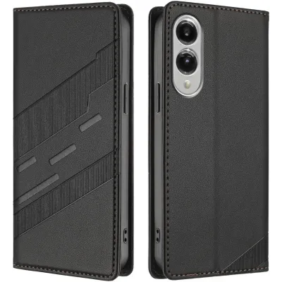 • Coque portefeuille Phonesta Embossed Lines pour Samsung Galaxy S25 Edge - Noir