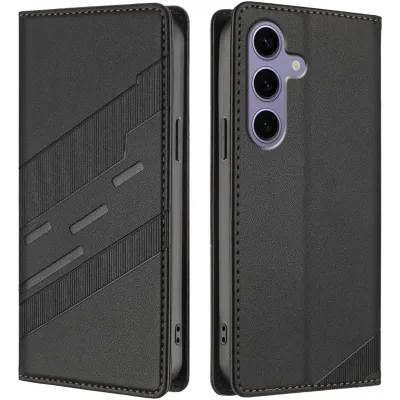 Coque portefeuille Phonesta Embossed Lines pour Samsung Galaxy S25 - Noir