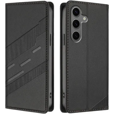 • Coque portefeuille Phonesta Embossed Lines pour Samsung Galaxy S25 Plus - Noir