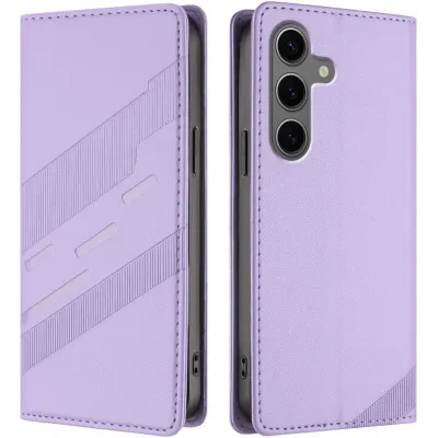 Coque portefeuille Phonesta Embossed Lines pour Samsung Galaxy S25 Plus - Violet