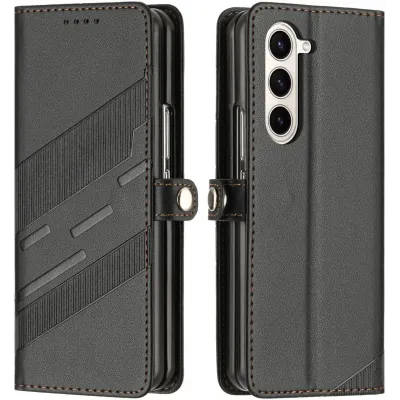 Coque portefeuille Phonesta Embossed Lines pour Samsung Galaxy Z Fold 6 - Noir