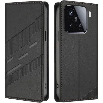Coque portefeuille Phonesta Embossed Lines pour Xiaomi 15 - Noir