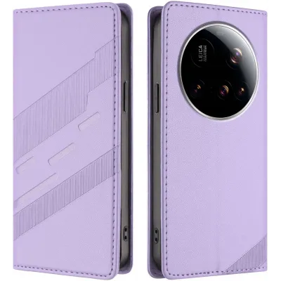 Coque portefeuille Phonesta Embossed Lines pour Xiaomi 15 Ultra - Violet