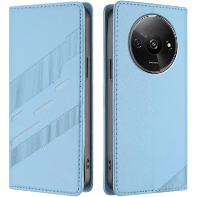 Coque portefeuille Phonesta Embossed Lines pour Xiaomi Redmi A3 - Bleu clair