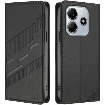 Coques de téléphoneCoques pour XiaomiCoques Xiaomi Redmi Note 14 4GCoque portefeuille Phonesta Embossed Lines pour Xiaomi Redmi Note 14 4G - Noir
