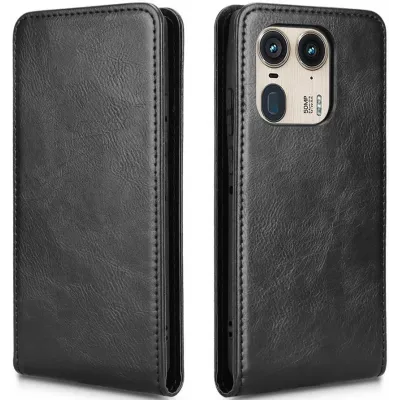 • Coque portefeuille Phonesta Leather Vertical Flip pour Motorola Edge 50 Ultra - Noir