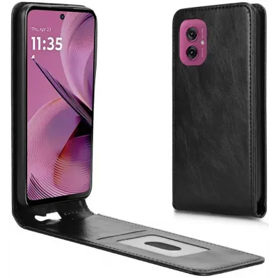 • Coque portefeuille Phonesta Leather Vertical Flip pour Motorola Moto G55 - Noir