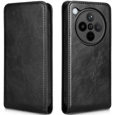 • Coque portefeuille Phonesta Leather Vertical Flip pour Oppo Find X8 Pro - Noir