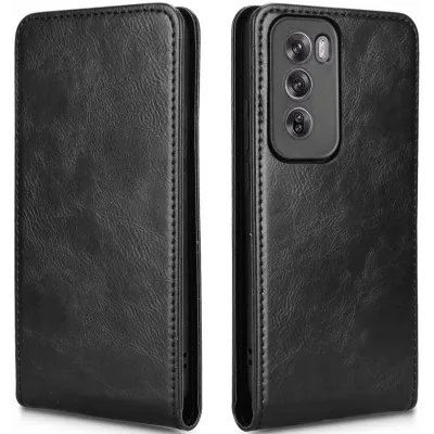 • Coque portefeuille Phonesta Leather Vertical Flip pour Oppo Reno12 Pro - Noir