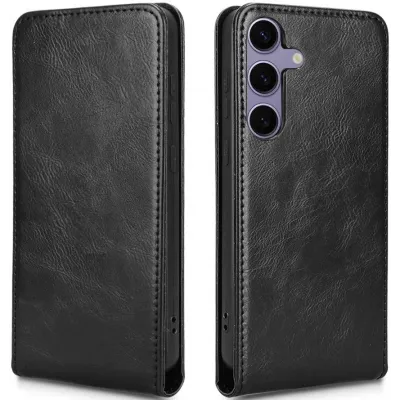 • Coque portefeuille Phonesta Leather Vertical Flip pour Samsung Galaxy S25 Plus/S24 Plus - Noir