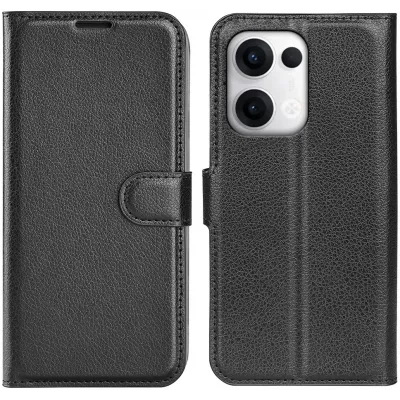 Coque portefeuille Phonesta Litchi Skin pour Oppo Reno13 - Noir