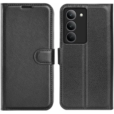 Coque portefeuille Phonesta Litchi Skin pour Realme 14x - Noir