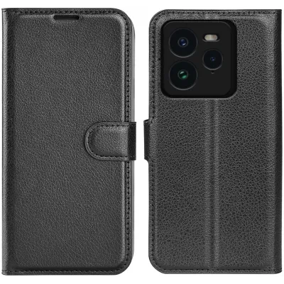 Coque portefeuille Phonesta Litchi Skin pour Realme GT 7 Pro - Noir