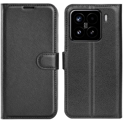 • Coque portefeuille Phonesta Litchi Skin pour Xiaomi 15 - Noir
