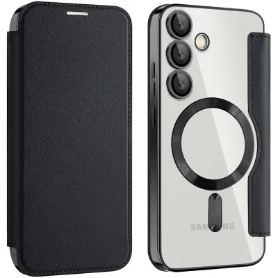 • Coque portefeuille Phonesta Luxury Crystal avec MagSafe pour Samsung Galaxy S24 FE - Noir