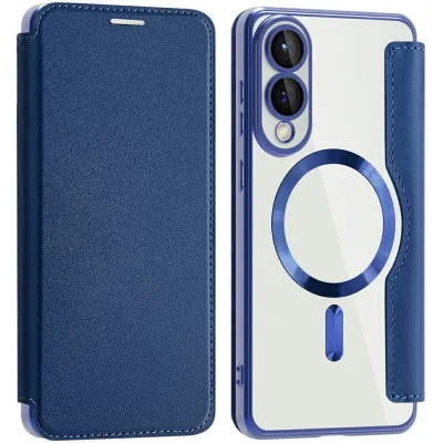 • Coque portefeuille Phonesta Luxury Crystal avec MagSafe pour Samsung Galaxy S25 Edge - Bleu foncé