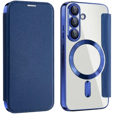 • Coque portefeuille Phonesta Luxury Crystal avec MagSafe pour Samsung Galaxy S25 Plus/S24 Plus - Bleu foncé