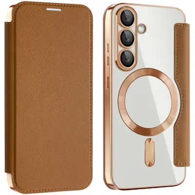 Coque portefeuille Phonesta Luxury Crystal avec MagSafe pour Samsung Galaxy S25 Plus/S24 Plus - Marron