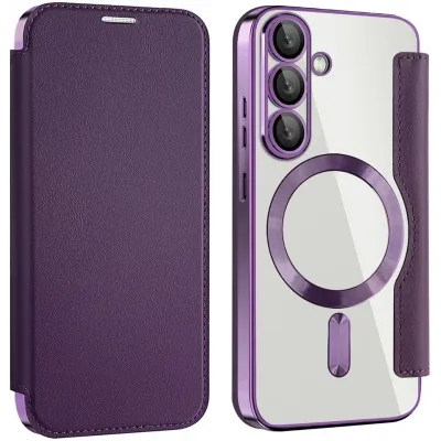 • Coque portefeuille Phonesta Luxury Crystal avec MagSafe pour Samsung Galaxy S25 Plus/S24 Plus - Violet foncé