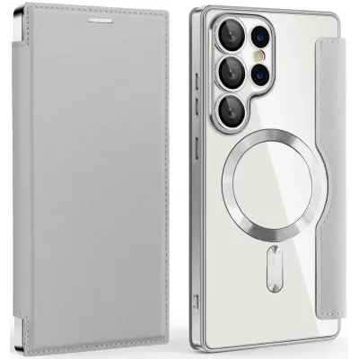 Coque portefeuille Phonesta Luxury Crystal avec MagSafe pour Samsung Galaxy S25 Ultra - Argent