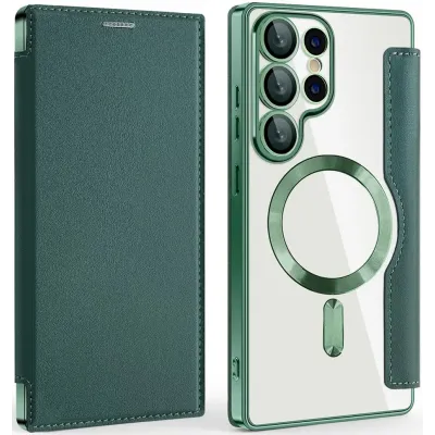 Coque portefeuille Phonesta Luxury Crystal avec MagSafe pour Samsung Galaxy S25 Ultra - Vert foncé