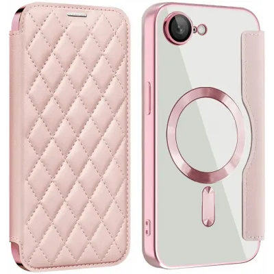 • Coque portefeuille Phonesta Luxury Crystal Puffed avec MagSafe pour Apple iPhone 17e/16e - Rose