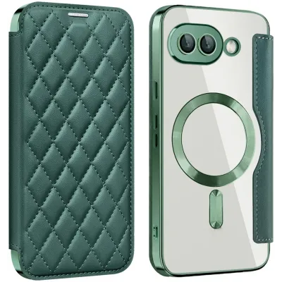 Coques de téléphoneCoques pour GoogleCoques Google Pixel 9aCoque portefeuille Phonesta Luxury Crystal Puffed avec MagSafe pour Google Pixel 9a - Vert foncé