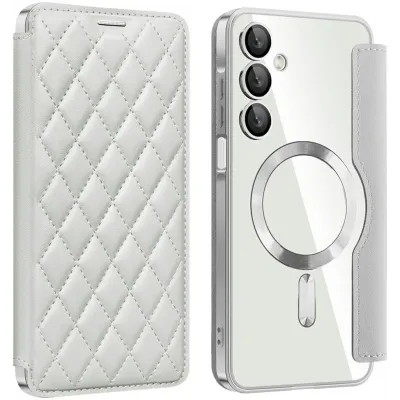 • Coque portefeuille Phonesta Luxury Crystal Puffed avec MagSafe pour Samsung Galaxy A16 - Argent