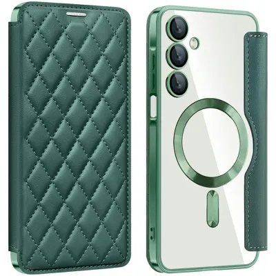 • Coque portefeuille Phonesta Luxury Crystal Puffed avec MagSafe pour Samsung Galaxy A16 - Vert foncé