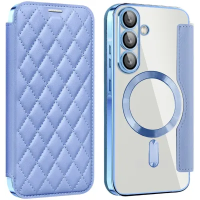 • Coque portefeuille Phonesta Luxury Crystal Puffed avec MagSafe pour Samsung Galaxy A36/A56 - Bleu clair