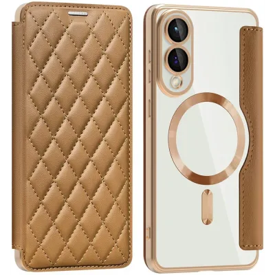 • Coque portefeuille Phonesta Luxury Crystal Puffed avec MagSafe pour Samsung Galaxy S25 Edge - Marron