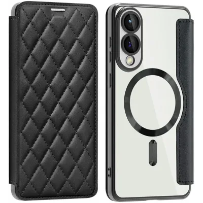 • Coque portefeuille Phonesta Luxury Crystal Puffed avec MagSafe pour Samsung Galaxy S25 Edge - Noir