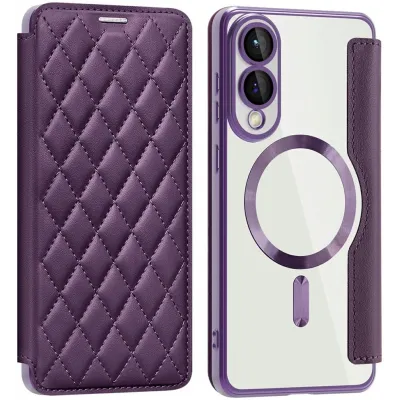 • Coque portefeuille Phonesta Luxury Crystal Puffed avec MagSafe pour Samsung Galaxy S25 Edge - Violet foncé