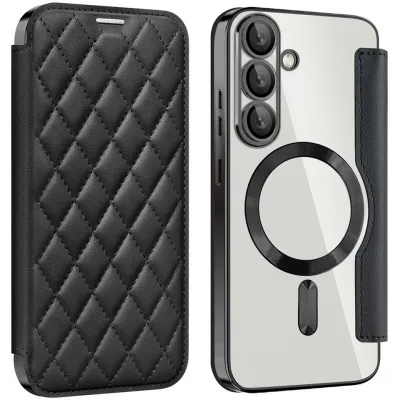 Coque portefeuille Phonesta Luxury Crystal Puffed avec MagSafe pour Samsung Galaxy S25 Plus/S24 Plus - Noir