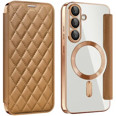 • Coque portefeuille Phonesta Luxury Crystal Puffed avec MagSafe pour Samsung Galaxy S25/S24 - Marron
