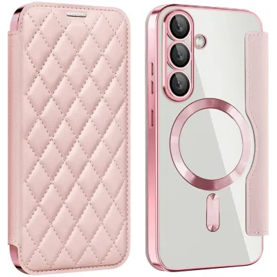 • Coque portefeuille Phonesta Luxury Crystal Puffed avec MagSafe pour Samsung Galaxy S25/S24 - Rose