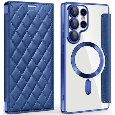 • Coque portefeuille Phonesta Luxury Crystal Puffed avec MagSafe pour Samsung Galaxy S25 Ultra - Bleu foncé