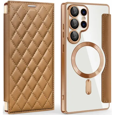 Coques de téléphoneCoques pour Samsung GalaxyCoques Samsung Galaxy S25 UltraCoque portefeuille Phonesta Luxury Crystal Puffed avec MagSafe pour Samsung Galaxy S25 Ultra - Marron