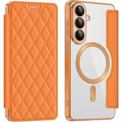 • Coque portefeuille Phonesta Luxury Crystal Puffed avec MagSafe pour Samsung Galaxy S26 Plus - Orange