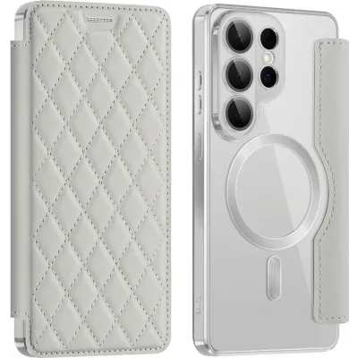 • Coque portefeuille Phonesta Luxury Crystal Puffed avec MagSafe pour Samsung Galaxy S26 Ultra - Argent