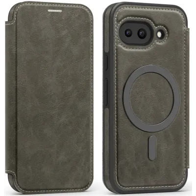 Coque portefeuille Phonesta Luxury Leather avec MagSafe pour Google Pixel 9a - Gris