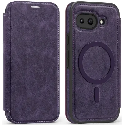 • Coque portefeuille Phonesta Luxury Leather avec MagSafe pour Google Pixel 9a - Violet foncé