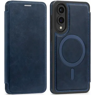 • Coque portefeuille Phonesta Luxury Leather avec MagSafe pour Samsung Galaxy S25 Edge - Bleu foncé