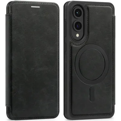 • Coque portefeuille Phonesta Luxury Leather avec MagSafe pour Samsung Galaxy S25 Edge - Noir